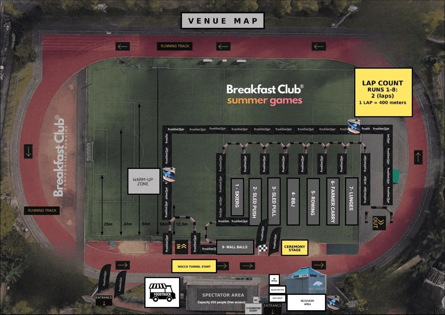 Race. Food. DJ Live. Performers. Electrolytes. Energy Drinks. Warm-up Zone. Recovery Zone. Changing Rooms. Bag drop. Restrooms. Cash Prize for champions. Spectator arena - free access. sunset after party. members and their friends only